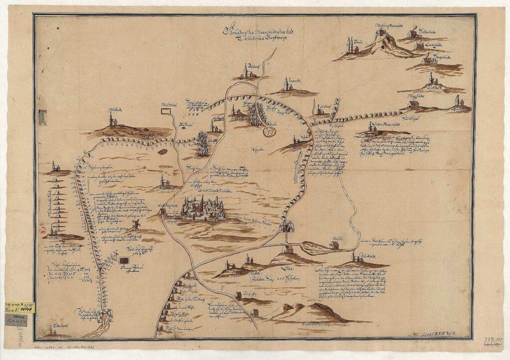 Ein Blick in die Geschichte: Karte des Mansfeldischen und Eislebener Bergwerks, Handzeichnung, nach 1628 : Grundriß des Manßfeldischen und Eißlebischen Bergwergs. – [S.l.] , [nach 1628]. – 1 Kt. : getuschte Handzeichng. ; 67 x 50 cm | Digitalisierung: SLUB Dresden | Datenpartner: Deutsche Fotothek | Lizenz: http://creativecommons.org/publicdomain/mark/1.0/ | URL: https://www.deutsche-digitale-bibliothek.de/item/OGWYIBM2IL5MBDQRTY5PGTCADGBQ367I